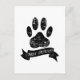 Impresión de la pata de perro con cinta negra. El mejor amigo del hombre. Imagen en blanco y negro.
