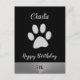 Paw de perro plateado sobre fondo negro. ¡Debes saber que tienes una foto!