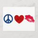 Paz, Amor, Beso de pintalabios con señal de paz, corazón rojo y labios rosas.