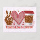 Disfrute de la trifecta de la tranquilidad con nuestras postales "Peace, Love, Coffee". Cada una es una postal muy bien diseñada, perfecta para difundir positividad y alegría cafeinada. Tanto si eres un aficionado al café como si simplemente aprecias el apacible poder de un buen café, estas postales te encantarán. Cada postal ofrece una mezcla única de imágenes pacíficas, mensajes sentidos y, por supuesto, un toque de encanto inspirado en el café. Compártelos con sus seres queridos, muéstrelos en su casa u oficina, o mantenerlos cerca para un impulso de humor instantáneo durante sus descansos de café. Estas postales, elaboradas con amor y atención a los detalles, son un regalo para cualquier amante del café en su vida. Añadirlos a la colección de papelería, enviarlos como recolectores motivacionales o enmarcarlos como miniobras de arte para adornar las paredes. ¡Acepta la calidez de una buena taza de jugo y difunde el amor con nuestras postales de "Paz, Amor, Café" hoy!