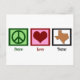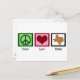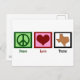 A los tejanos y turistas nativos que les encanta visitar Austin, San Antonio y Dallas les encantará este lindo recuerdo de Texas. Una postal con un signo de paz, corazón y el estado naranja de Texas.