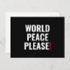 La paz mundial, por favor, un exclamación de texto en blanco, negro y rojo, minimalista tarjeta postal moderna contra la protesta de guerra.
