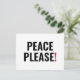 Paz, por favor, texto blanco negro y rojo minimalista moderno negrita postal de protesta contra la guerra.