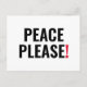 Postal Paz, por favor, texto rojo blanco contra la protes