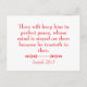 Isaiah 26:3: "Thou wilt keep him in perfect peace, whose mind is stayed on thee: because he trusteth in thee." A hopeful note for anyone who could use a word of hope, peace, and encouragement. This high quality postcard will bring comforting scripture and send your message while sharing faith. Use it for "thinking of you" or anytime you wish to uplift someone.