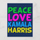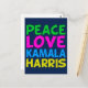 Cute Peace Love Kamala Harris postales para un demócrata progresista al que le encantan los diseños políticos divertidos y coloridos. Vota por Kamala como presidente en las elecciones de 2024. Un diseño liberal divertido en colores brillantes.