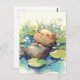 Postal Peaceful Capybara Floating in Water Lily Pond