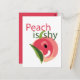 Peach es una postal Shy Cute Peach Fruit diseñada por Nisha Prabhu. ¡Presentamos nuestra adorable Peach es Shy Cute Peach Fruit Postcard! Este encantador y lúdico diseño es perfecto para enviar saludos cálidos y dulces a sus seres queridos o como una deliciosa adición a su frutícola colección de papelería. Con un entrañable ilustracion de melocotón rubio con ojos tímidos y una sonrisa infame, esta postal seguramente derritirá los corazones. Los colores vivos y la atención por los detalles hacen que este diseño sea realmente atractivo y cautivador. Esta postal no sólo es versátil sino también versátil en su uso. Ya sea que estés enviando deseos de cumpleaños, expresando gratitud o simplemente pensando en alguien especial, esta postal transmitirá tus emociones perfectamente. También puede emparejarlo con mensajes personalizados o agregar su propio toque creativo para hacerlo verdaderamente único. Ideal para los amantes de la fruta, los amantes de la naturaleza o los amantes de la delicadeza, esta postal es un regalo atento y delicioso. Entonces, ¿por qué esperar? ¡Difundan alegría y dulzura con nuestra Peach es Shy Cute Peach Fruit Postcard hoy!