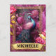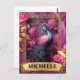 Postal Peacock romántico de Fuchsia y Rosas
