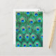 Un conjunto de impresionantes plumas de pavo real en tonos verde azulados, azules, verdes y acuáticos.