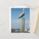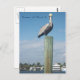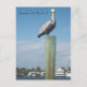 Un pelícano silvestre parado en un poste de muelle con botes en el fondo de la playa de la Ciudad de Panamá, Florida.