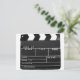 Clapperboard tal y como lo utilizan la industria cinematográfica, cinematográfica, de vídeo para sincronizar sonido e imágenes, y hacer referencia a escenas o tomas. También se conoce por nombres como clapper, clapboard, slate, slate board, slapperboard, sync slate, time slate, sticks, board y sound marker.