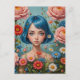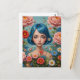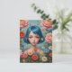 Una mujer con el pelo azul en las flores posando artísticamente para el mundo y el día de la jardinería artificial generó arte