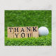 Postal Pelota de golf con la palabra gracias sobre hierba