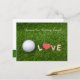 Postal Pelota de golf en hierba verde para el cumpleaños