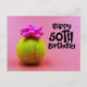 Postal Pelota de tenis con palabra cumpleaños 50 en rosa