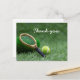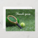Postal Pelota de tenis y raqueta sobre hierba verde