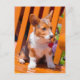 Postal Pembroke Welsh Corgi cachorro sentado en el banco