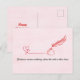 Say "Happy Valentine's Day" to your dearest pen pal friend with this whimsical quote on a postcard. The front of the card features hand drawn heart line art and a quill in an ink jar. The quote "Distance means nothing when the ink is this close." The background is illustrated with pink, fluffy clouds. The text is charcoal gray and the art is deep red. The back of the card simply states "Happy Valentine's Day".