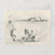 Postal Pencil Sketch Antique Winter Farm Scene