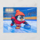 Postal Penguin Playing Curling on an Icy Winter Rink
