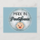 Esta graciosa postal presenta una cara de bebé blanca que dice "Hecho en Pensilvania" con un fondo azul. Perfecto para invitaciones de recién nacido o sólo para diversión.