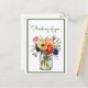 Ilustracion acuático de flores amarillas, rosas, rojas y azules en un frasco. Este arte botánico de ilustracion es perfecto para un simple saludo de Thinking of You, pero usted puede cambiar el texto a su saludo preferido. Gráfico asistido por IA adquirido con uso comercial. Pintura: DreamCafeArt