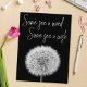 Elegante postal motivacional que presenta una original foto macro en blanco y negro de un hermoso diente de león con una cita inspiradora en un elegante caligrafía de tipo blanco que dice "Algunos ven una maleza, algunos ven un deseo"