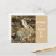 "Alguien está pensando en ti" es el sentimiento en esta barata postal. Un adorable conejito marrón está sentado en el suelo con sus largas orejas levantadas y alerta. En el lado derecho de esta postal aparece un cartel marrón claro con texto que se puede personalizar fácil y rápidamente si se desea. Foto original - C. McGouldrick