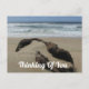 Permita que alguien especial sepa que está pensando en él con una tarjeta postal económica que presenta una hermosa foto de paisaje. Esta fotografía captura las olas que rompen, la hermosa arena marrón y un trozo de madera flotante. Un brillante cielo azul aparece en el horizonte. "Pensando en ti" se puede personalizar fácilmente si lo desea.