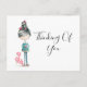 Postal "Pensando en ti" Chica de Boho con pájaro