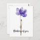 Esta tarjeta postal presenta una flor púrpura y las palabras, "Pensando en ti."