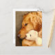 Pensando en ti para aquellos que están luchando con enfermedad, pérdida o dificultades, coronavirus, covid 19, Perrito de Mascota Retriever Dorado Triste y Bonito acurrucado con un osito de peluche.