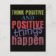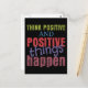 Afirmación positiva que dice ¡Piensen en cosas positivas y positivas suceden! Grandes colores terrenales que promueven un mantra personal pacífico sobre pensar positivo!