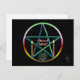 Un pentáculo de cuerda verde claro gotea con nieve derretida rodeada por los colores del Sabbet de Imbolc a principios de febrero; el hombre verde aparece como velas quemadas.