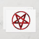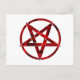 Pentagrama rojo, invertido, texturado en círculo, sobre fondo blanco. Símbolo oculto. 666