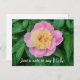 Esta tarjeta postal presenta una fotografía de una flor de peonía rosa sorbete y blanca con hojas verdes. En la parte inferior de esta tarjeta está la expresión "Solo una nota para decir hola" Personalice este texto con sus propias palabras o compre como se muestra. También puede editar esta tarjeta postal para subir su propia foto.