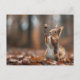 Postal Pequeña ardilla pequeña que atrapa una bellota
