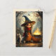 Postal Pequeña bruja en el bosque con caldero de bruja