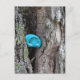 Postal Pequeña roca arcoiris pintada escondida en un árbo