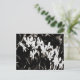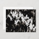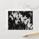 Postal con foto en blanco y negro de pequeñas orquídeas blancas.