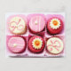 Chocolates rosas y blancos con varios rellenos, decorados con iniciales y flores.