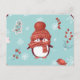 Pequeño pingüino dulce con una bufanda roja brillante y un gorra a juego.