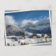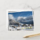 Postal Pequeño pueblo con montañas Dolomitas en la nieve