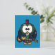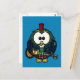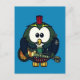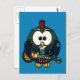 Pequeño punk animado, búho rockero sobre un fondo azul.