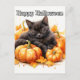 Postal Pequeño y espeluznante gatito negro de Halloween