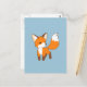 Pequeño zorro lindo con orejas grandes está parado con su cola buscada hacia arriba y mirando hacia el lado.