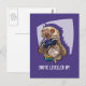 Una divertida tarjeta postal de un perezoso jugador. Utilice "Personaliza esta plantilla" para modificar el texto "¡HAS SUBIDO DE NIVEL!" y crear un mensaje único y personalizado. Felicita a un jugador con esta tarjeta postal que presenta un perezoso emocionado; podría ser para un cumpleaños, un nuevo trabajo, un examen aprobado o una prueba de conducir. ¡Tú decides!