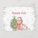 Esta encantadora tarjeta de agradecimiento presenta una encantadora ilustración de acuarela de un Shih Tzu vestido con atuendo festivo de vacaciones. El perro lleva una bufanda roja acogedora y un sombrero de Santa, sentado junto a un árbol de Navidad decorado con adornos y una estrella brillante. El fondo tiene sutiles elementos temáticos de vacaciones como copos de nieve, bastones de caramelo, medias y puntos rojos juguetones, lo que agrega un toque caprichoso a la atmósfera festiva. Perfecta para enviar cálida gratitud durante las vacaciones, esta tarjeta hará sonreír a cualquiera que ame a los perros y la temporada de Navidad.