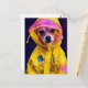 Postal Perro adorable en un abrigo amarillo